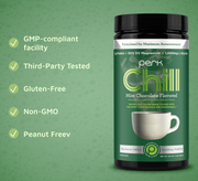 Relax & Unwind: Perk Chill features ingredients like magnesium, zinc, and glycine– nutrients involved in muscle and nervous system functions–that can help set the tone for a restful night. With soothing flavors and thoughtful nutrients, it’s a gentle way to ease into your evening routine.
