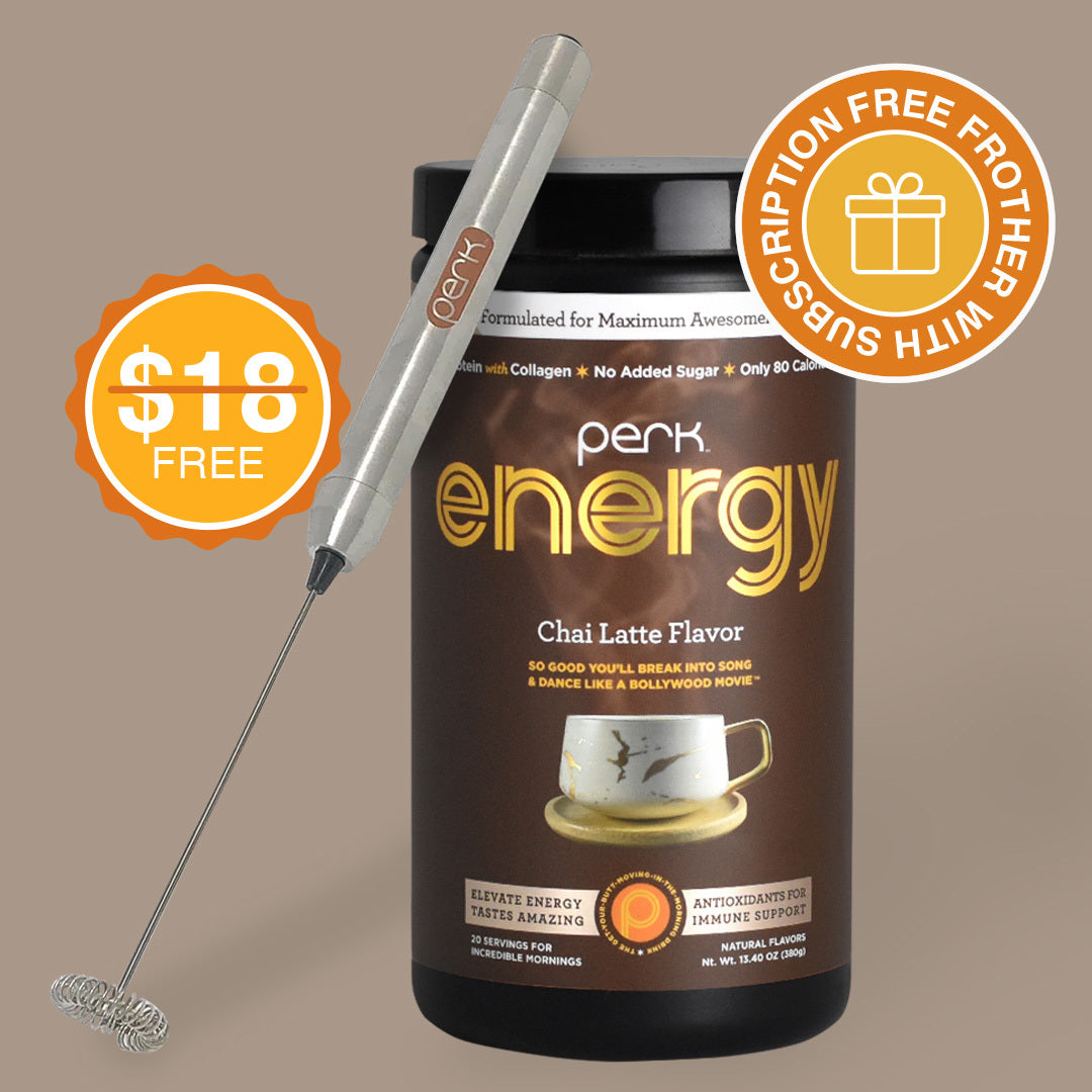 Perk Energy is the warm, smooth boost that’ll have you wondering how you ever lived without it. No gimmicks—just a seriously tasty way to add a little extra oomph to your day. Get the Perk Energy Starter Kit today: 20 servings of Perk Energy (any flavor) plus a FREE frother.